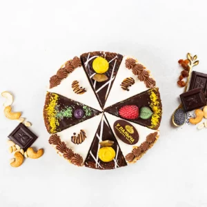 Сахар, яйцо куриное пищевое, масло сливочное (19%) (сливки пастеризованные), ядра миндаля, ядра орехов фундука (7%), ядра арахиса, вода очищенная, мука рисовая, молоко питьевое, какао-порошок, молоко цельное сгущенное с сахаром (молоко нормализованное, сахар (сахароза, лактоза)), шоколад темный (какао тёртое, сахар, масло какао, эмульгатор соевый лецитин, ароматизатор экстракт ванили натуральный), коньяк (дистилляты коньячные, выдержанные в контакте с древесиной дуба не менее трех лет, вода питьевая, сахарный сироп, краситель сахарный колер I простой), регулятор кислотности лимонная кислота, ароматизатор экстракт ванили натуральный, консервант сорбиновая кислота, патока, красители натуральные: бета-каротин, кармины, медные комплексы хлорофиллов; масло какао, краситель диоксид титана. Произведено на предприятии, на котором также выпускаются продукты, содержащие кунжут. ПРИ ПРОИЗВОДСТВЕ ИСПОЛЬЗУЮТСЯ ЦЕЛЬНЫЕ ОРЕХИ, КОТОРЫЕ ПРОШЛИ ТЩАТЕЛЬНУЮ ОБРАБОТКУ, ОДНАКО, В РЕДКИХ СЛУЧАЯХ НЕ ИСКЛЮЧЕНО ПОПАДАНИЕ СКОРЛУПЫ И (ИЛИ) ЕЁ ФРАГМЕНТОВ.